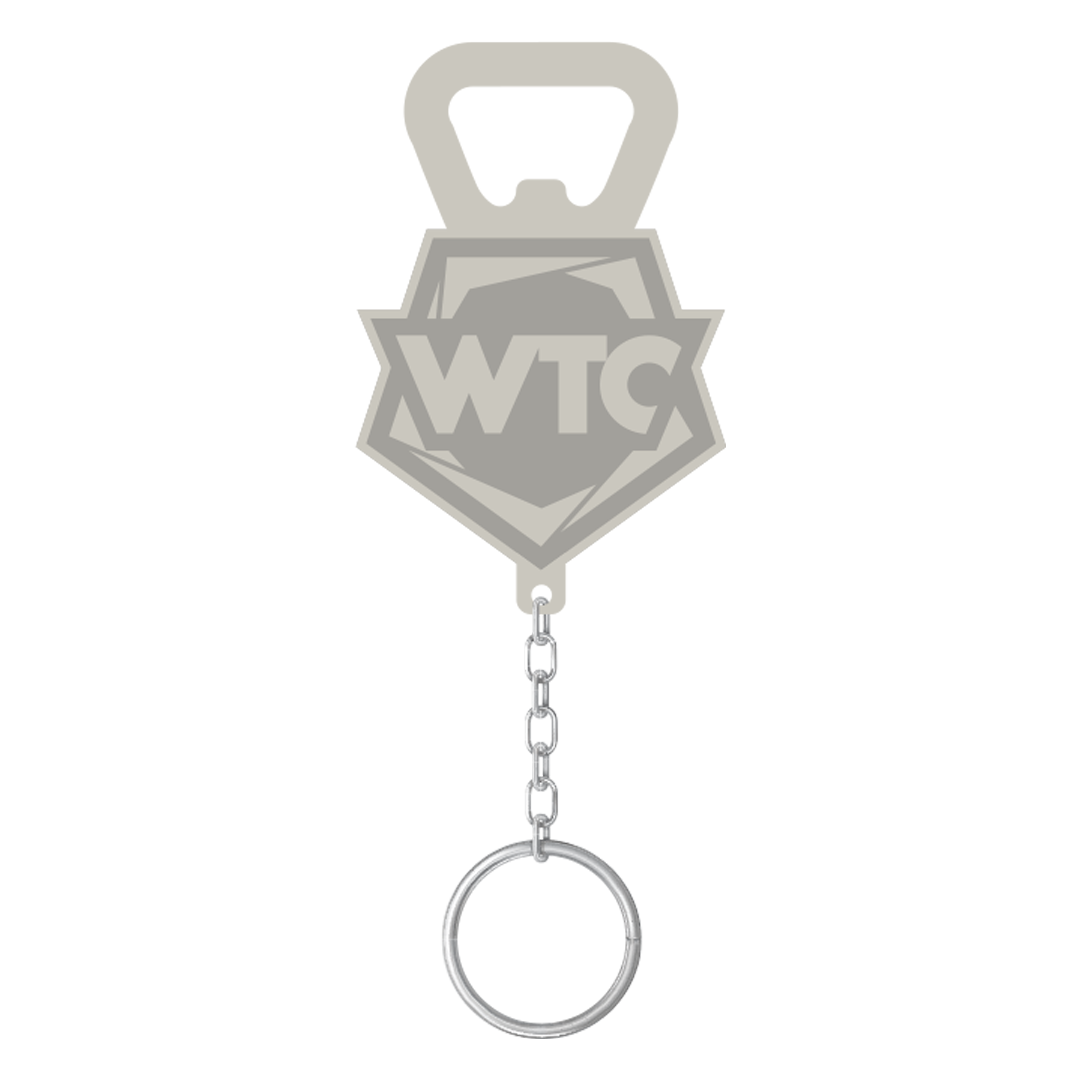 Rip the cap off any beer in style with the our bottle opener with the WTC logo.